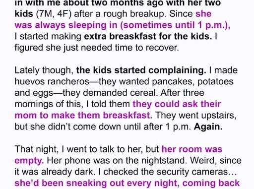 She’d left her boyfriend—or rather, she’d fled. She didn’t tell me much, but I gathered enough: controlling, jealous, angry. Her kids, seven-year-old Mason and four-year-old Lila, were strapped into the backseat as she drove who-knows-where. She asked if they could stay with me for a few days.