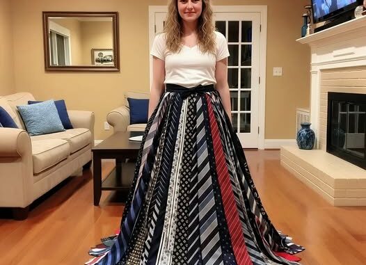Prom was everything I didn’t realize I needed. Heads turned when I walked in. People asked about the skirt, and I proudly said, “It’s made from my late dad’s ties. He passed away this spring.” Teachers teared up, friends hugged me, and even strangers whispered, “That’s the sweetest, most beautiful thing I’ve ever heard.”